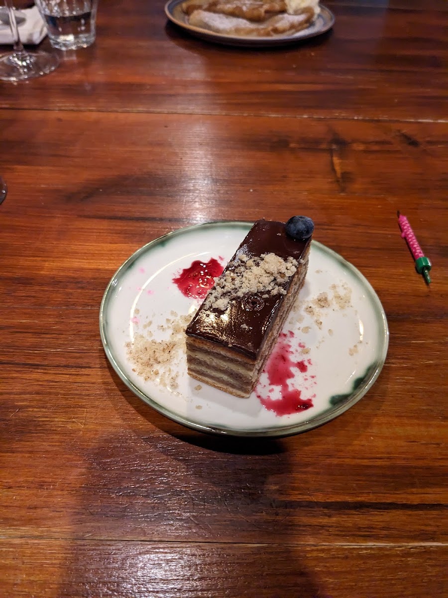 Zserbó, a traditional Hungarian layered pastry filled with apricot jam, is a must-try dessert that perfectly balances sweetness and richness. Gesztenyepüré, a chestnut puree served with whipped cream, is another dessert that reflects the Hungarian love for seasonal, organic ingredients. The restaurant's menu also features a variety of organic beverages including fine white wines, liqueurs, and even juices, allowing guests to pair their meals with something refreshing or indulgent.