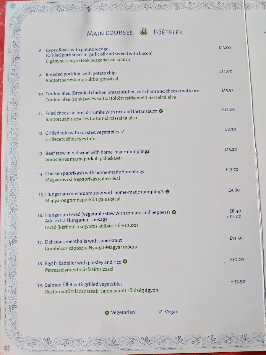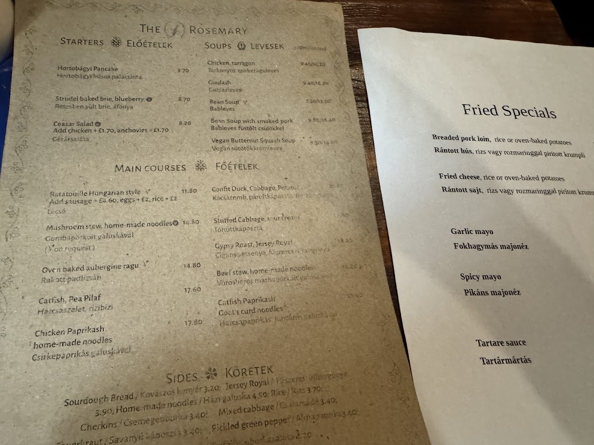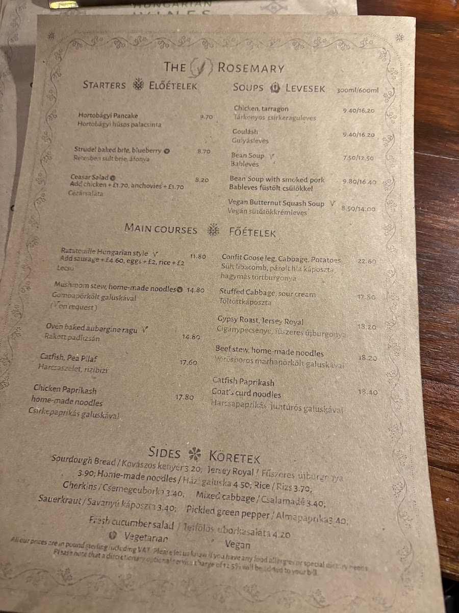 Bableves A hearty soup with bean served in a cauldron. Great choice for vegetarians. Meat lovers can add smoked pork cooked separately.
