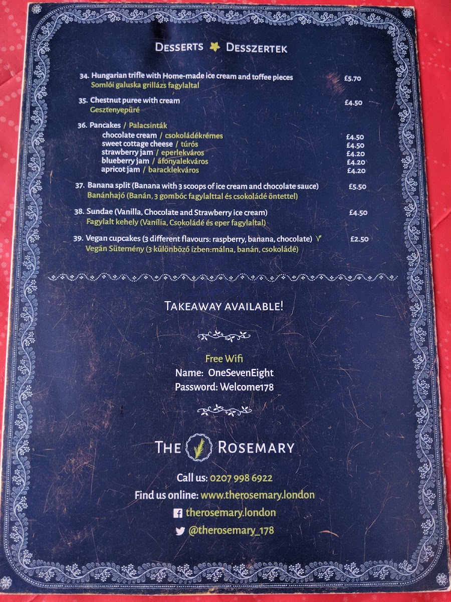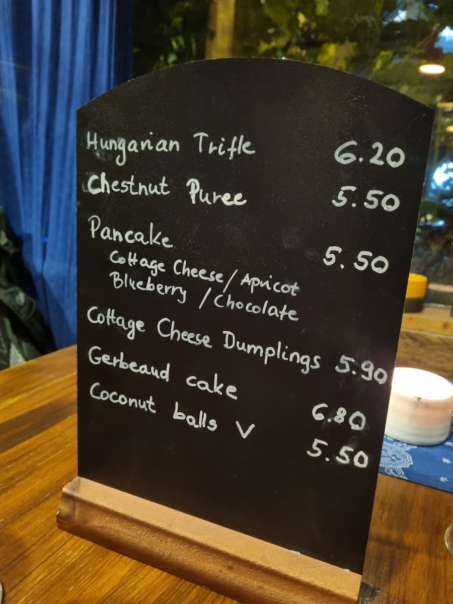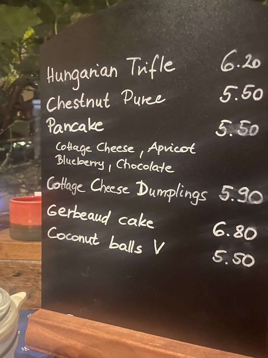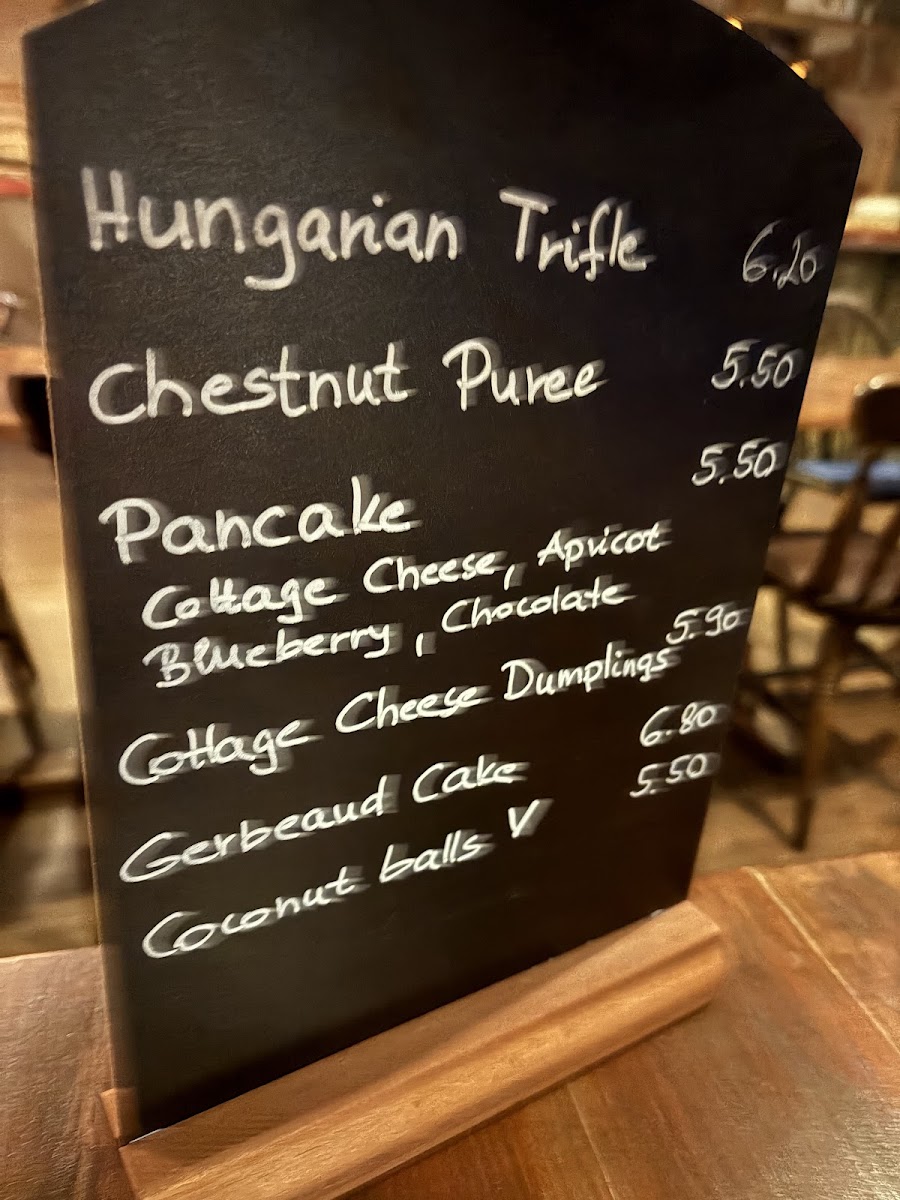 Cottage Cheese,Apricot,Blueberry,Chocolate Palacsinta Túrós/ Barackos / Áfonyás / Csokis Crépes, available with various home-made fillings, like cottage cheese, chocolate, apricot or blueberry jam